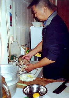 Você, que já deu uma olhadinha nas fotos, percebeu o ar tranqüilo do Zhu Yu ao saborear o coelho ou o pato com cabeça de boneca?